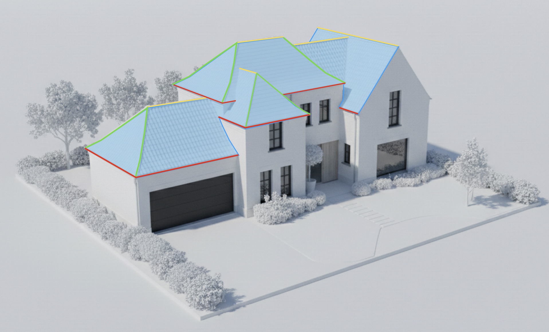 A complete roof model is created within seconds of entering the address.
